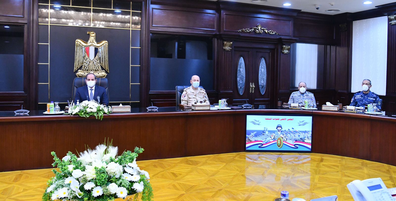 >>الرئيس السيسى يجتمع بالأعلى للقوات المسلحة ويوجه باستكمال تطهير بعض المناطق بشمال سيناء من الإرهابيين