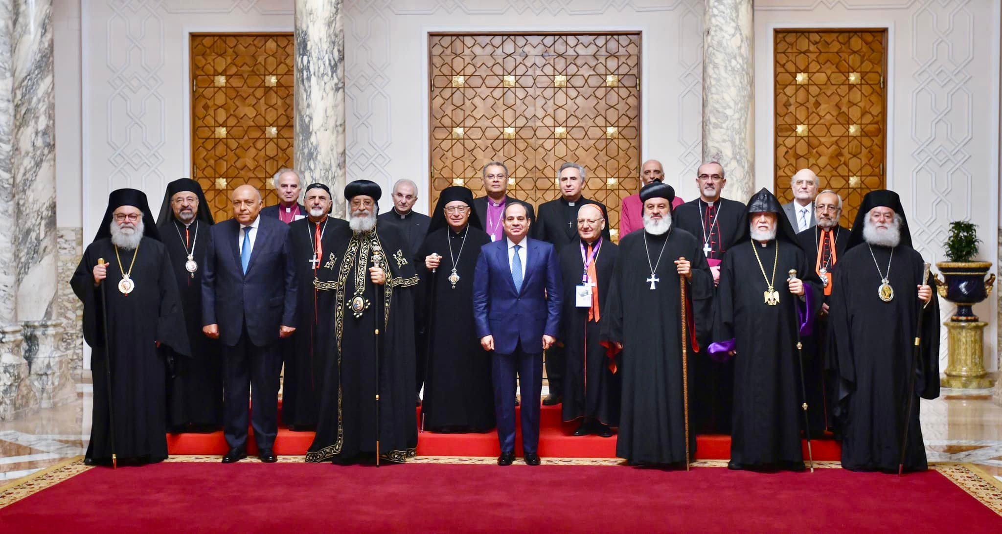 الرئيس السيسى يستقبل رؤساء كنائس الشرق الأوسط بحضور البابا تواضروس الثانى.. ويؤكد: المواطنة والحقوق المتساوية للجميع قيم ثابتة تمثل نهج الدولة تجاه المواطنين.. ونعمل على نشر ثقافة التعددية وحرية الاعتقاد