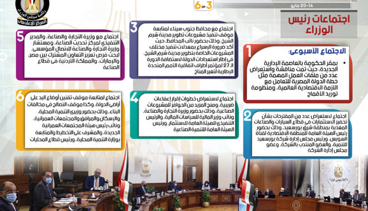 الحصاد الأسبوعي لمجلس الوزراء خلال الفترة من 14 حتى 20 مايو 2022