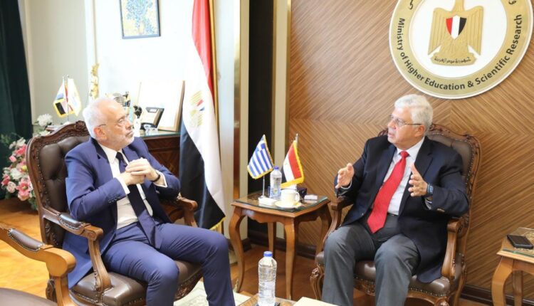 استقبل الدكتور أيمن عاشور، وزير التعليم العالي والبحث العلمي، السيد نيقولاوس باباجيورجيو، سفير اليونان بالقاهرة؛ لبحث سبل تطوير التعاون المشترك في مجال التعليم العالي والبحث العلمي، بحضور الدكتور شريف صالح رئيس قطاع الشئون الثقافية والبعثات، وذلك بمقر الوزارة بالعاصمة الإدارية الجديدة.